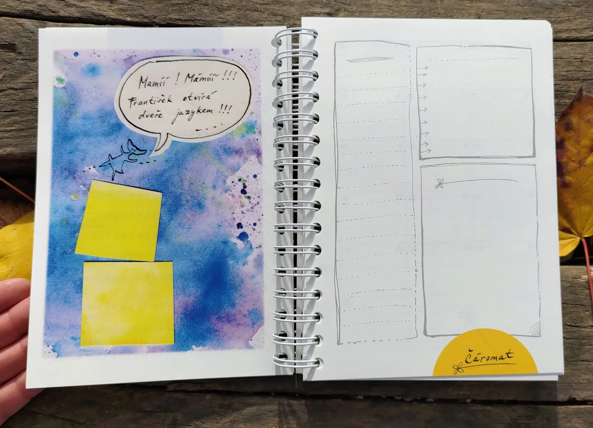 Nedatovaný diář z Čáromatu: diář pro matky, otce, jednorožce a jiné zázračné bytosti. Obří diář pro superschopné rodinné manažery. Pokud se každý den snažíte zvládat rodinný kolotoč, tou zázračnou bytostí jste právě vy!